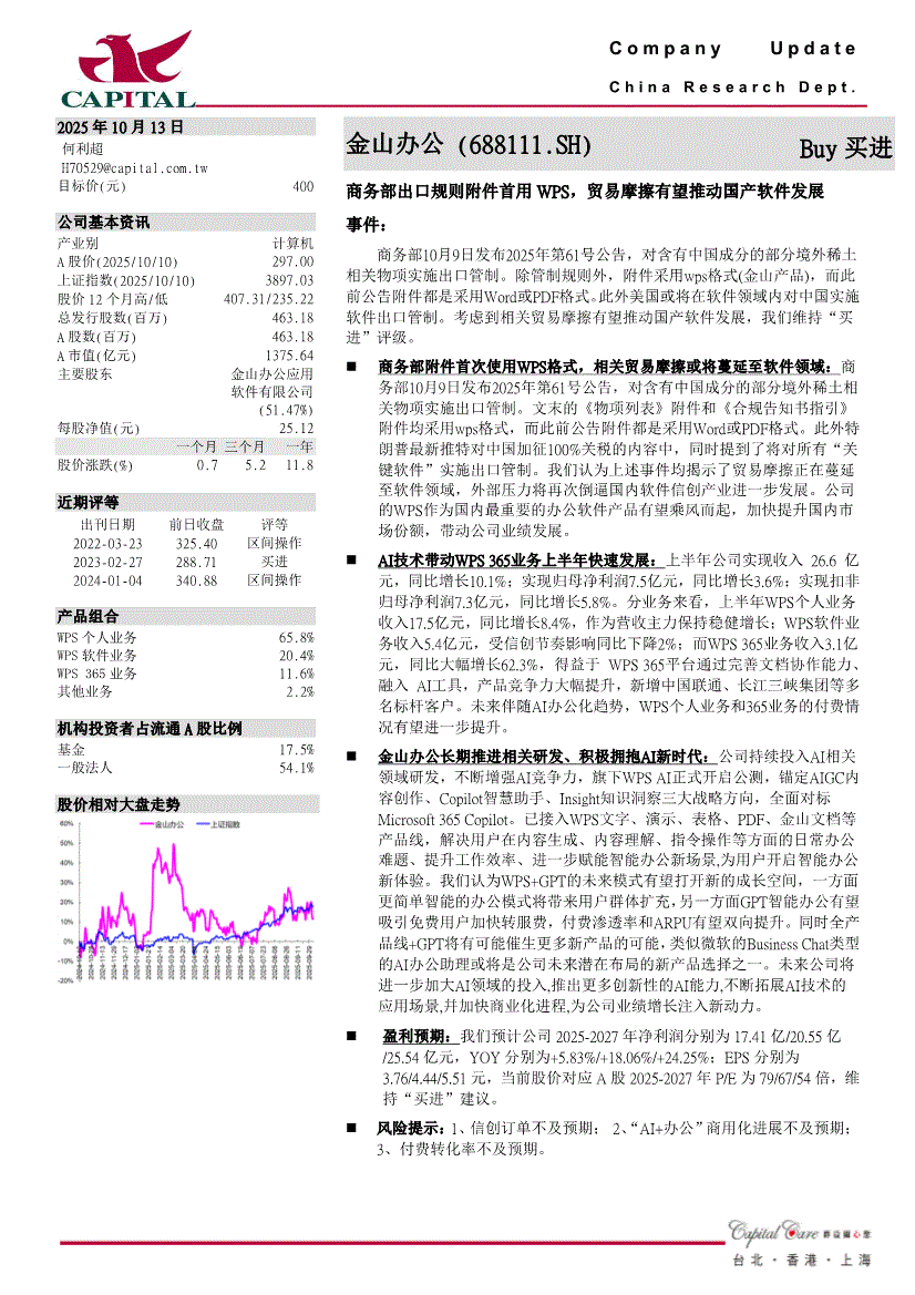 金山办公:群益证券-金山办公-688111-商务部出口规则附件首用WPS,贸易摩擦有望推动国产软件发展-251013