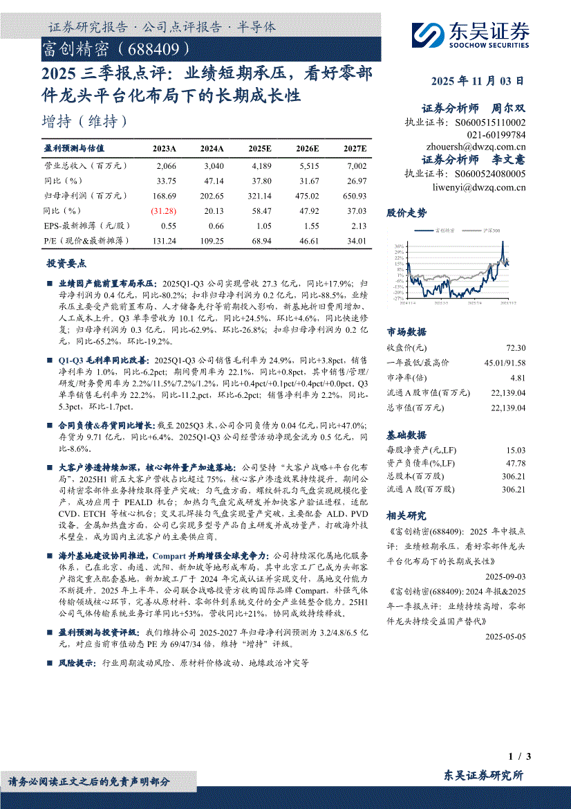 富创精密:东吴证券-富创精密-688409-2025三季报点评:业绩短期承压,看好零部件龙头平台化布局下的长期成长性-251103