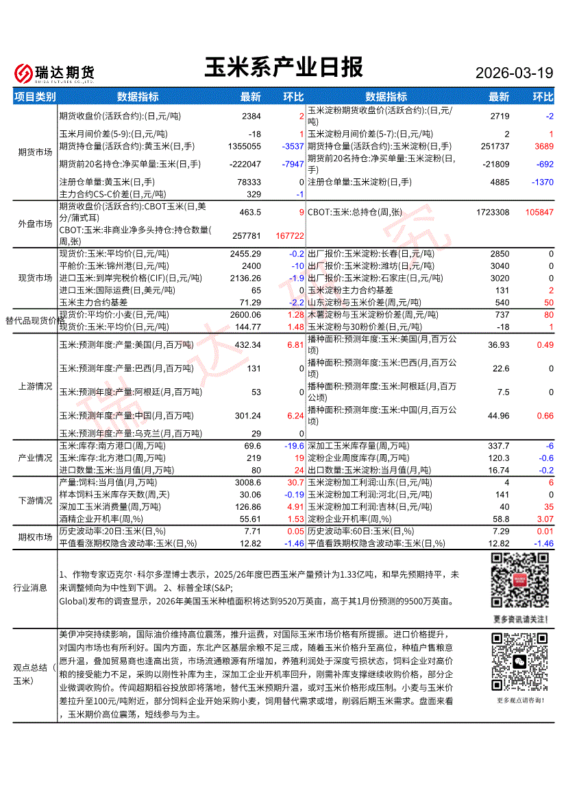 瑞达期货-玉米系产业日报-260319