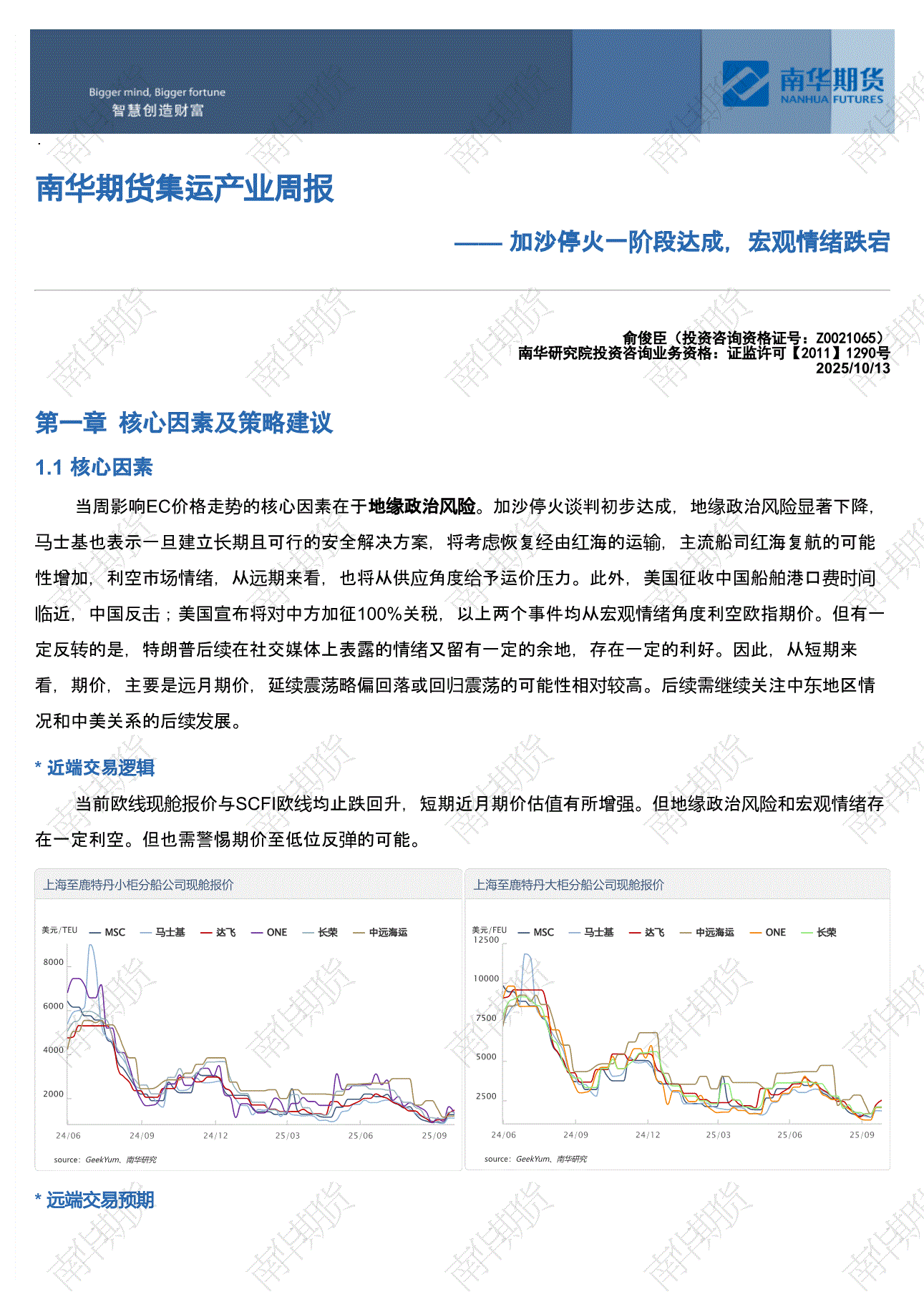 南华期货-集运产业周报:加沙停火一阶段达成,宏观情绪跌宕-251013