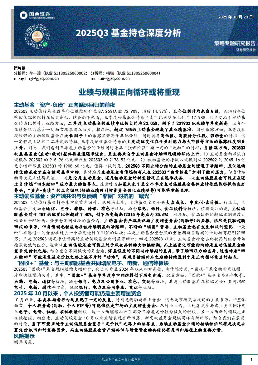 国金证券-2025Q3基金持仓深度分析:业绩与规模正向循环或将重现-251029