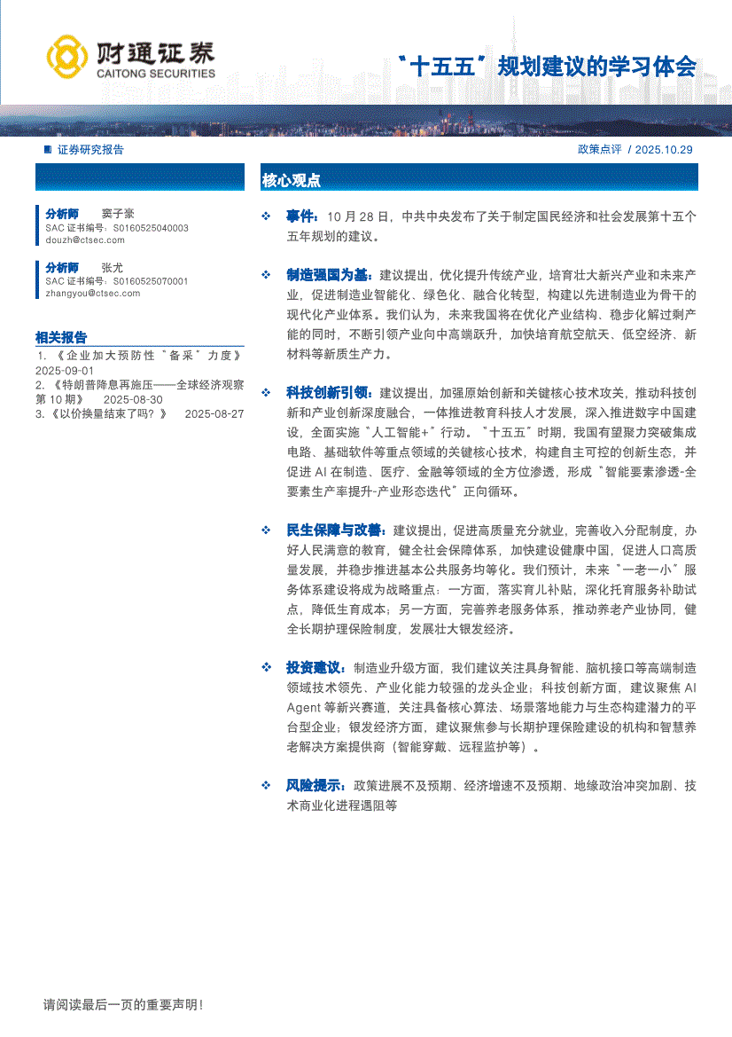 财通证券-政策点评:“十五五”规划建议的学习体会-251029