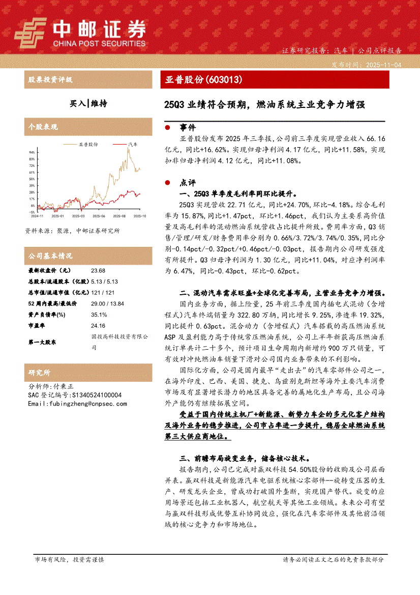 亚普股份:中邮证券-亚普股份-603013-25Q3业绩符合预期,燃油系统主业竞争力增强-251104