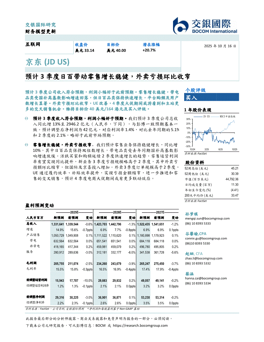 京东集团:交银国际-京东集团-JD.US-预计3季度日百带动零售增长稳健,外卖亏损环比收窄-251016