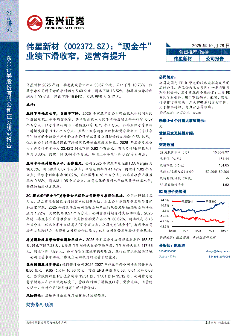 伟星新材:东兴证券-伟星新材-002372-“现金牛”业绩下滑收窄,运营有提升-251028