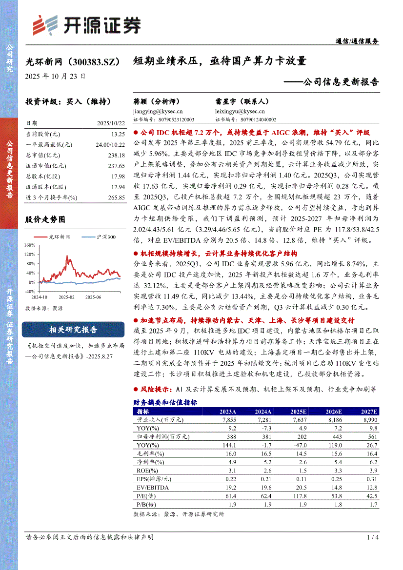 光环新网:开源证券-光环新网-300383-公司信息更新报告:短期业绩承压,亟待国产算力卡放量-251023