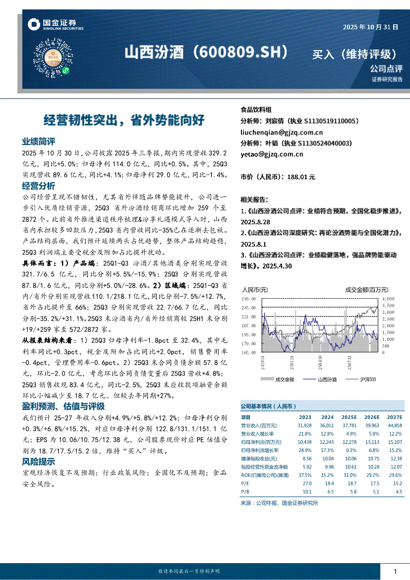 山西汾酒:国金证券-山西汾酒-600809-经营韧性突出,省外势能向好-251031