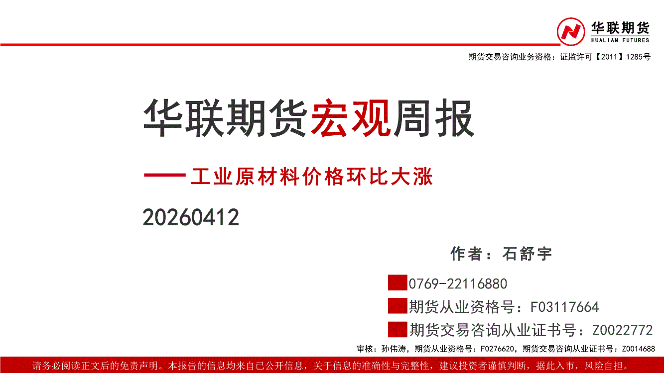 华联期货-宏观周报:工业原材料价格环比大涨-260412