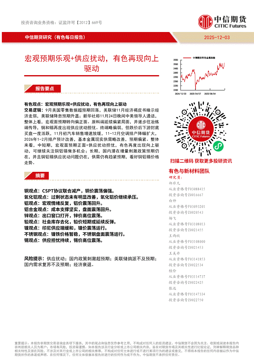 中信期货-有色每日报告:宏观预期乐观+供应扰动,有色再现向上驱动-251203