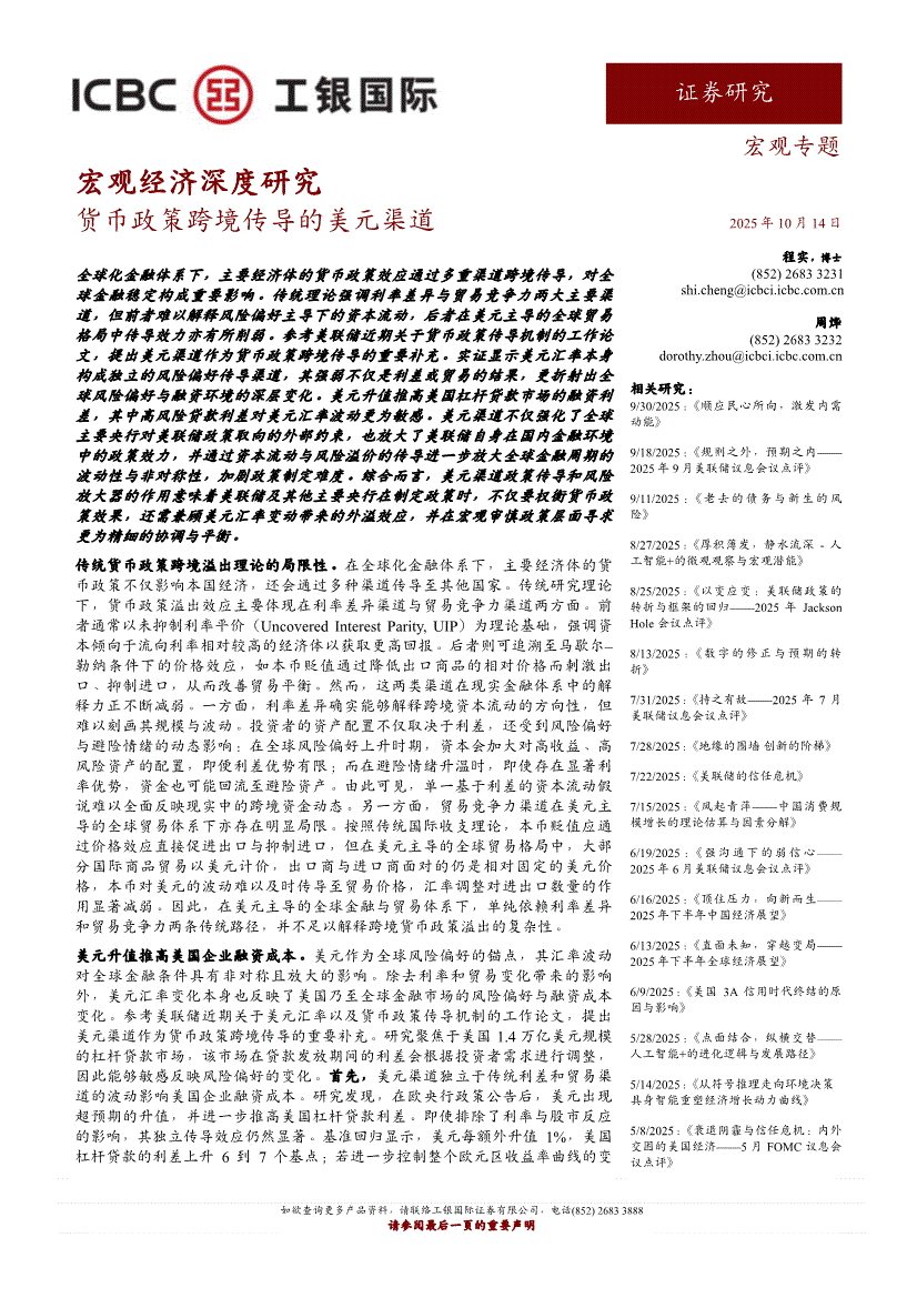 工银国际-宏观经济研究:货币政策跨境传导的美元渠道-251014