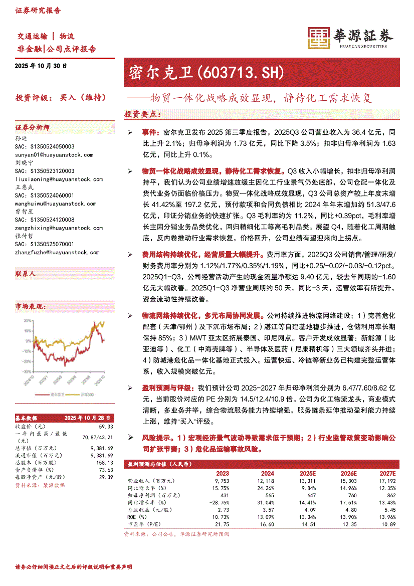 密尔克卫:华源证券-密尔克卫-603713-物贸一体化战略成效显现,静待化工需求恢复-251030