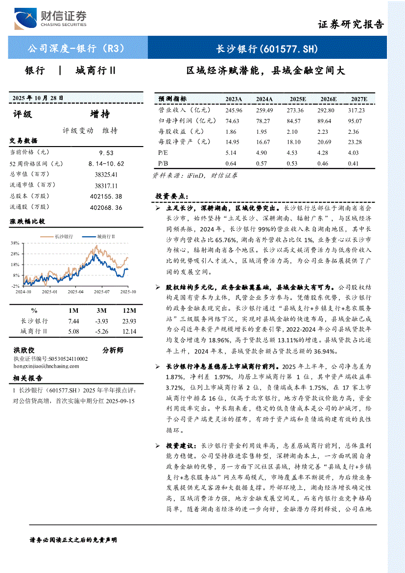 长沙银行:财信证券-长沙银行-601577-区域经济赋潜能,县域金融空间大-251028