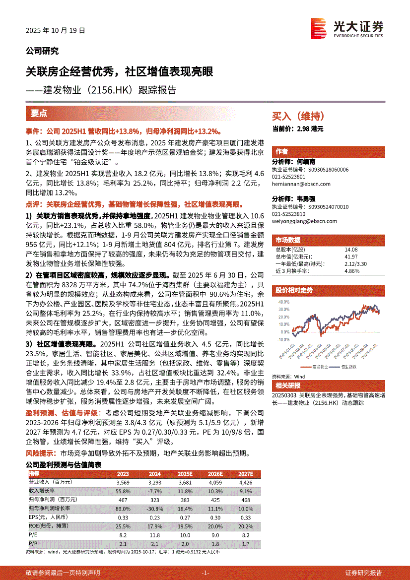 建发物业:光大证券-建发物业-2156.HK-跟踪报告:关联房企经营优秀,社区增值表现亮眼-251019
