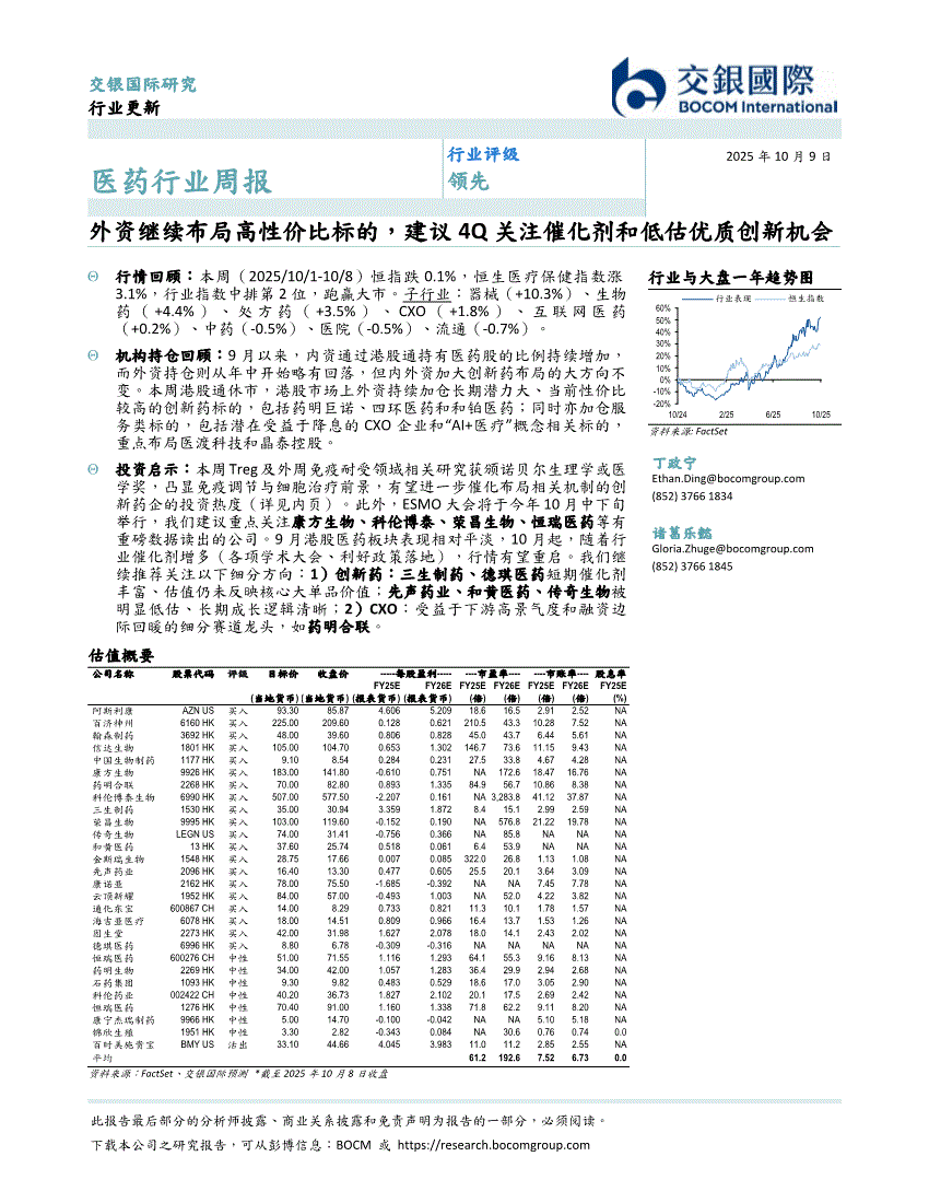交银国际-医药行业周报:外资继续布局高性价比标的,建议4Q关注催化剂和低估优质创新机会-251009
