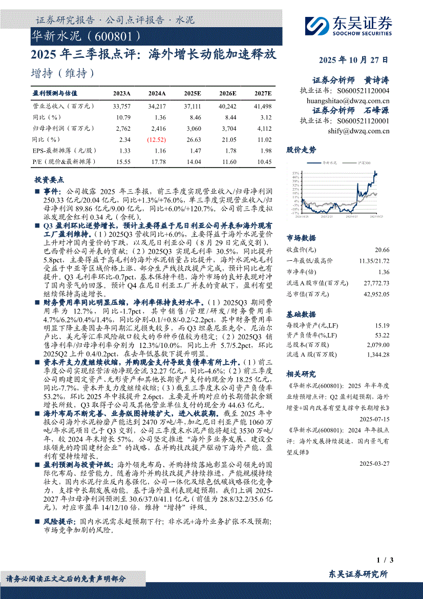 华新水泥:东吴证券-华新水泥-600801-2025年三季报点评:海外增长动能加速释放-251027